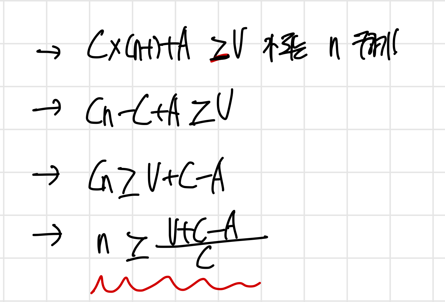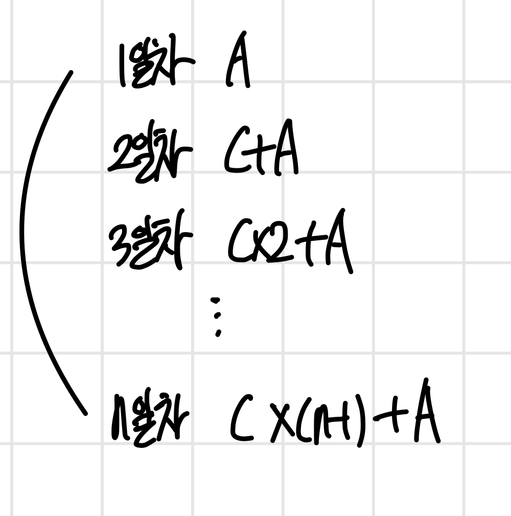 우리가 구하고자 하는 n에 대한 식은 다음과 같이 나타낼 수 있다는 것을 알 수 있다