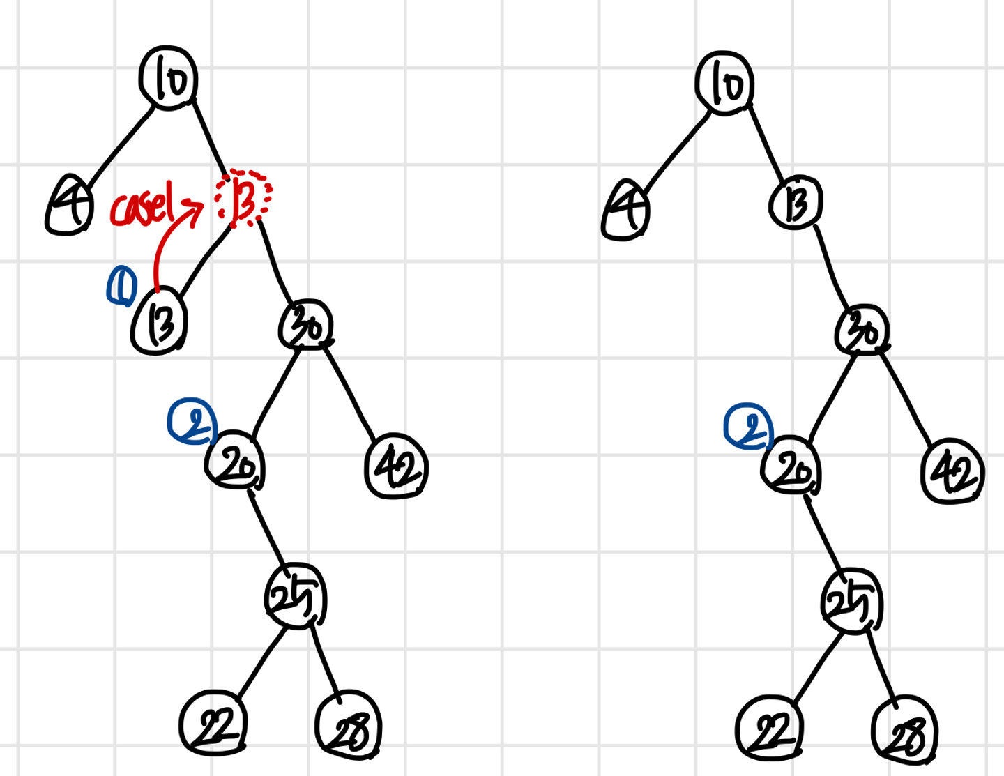 2. successor 가 존재하던 자리는 적절한 case (1 or 2) 에 맞게 그래프 재배치