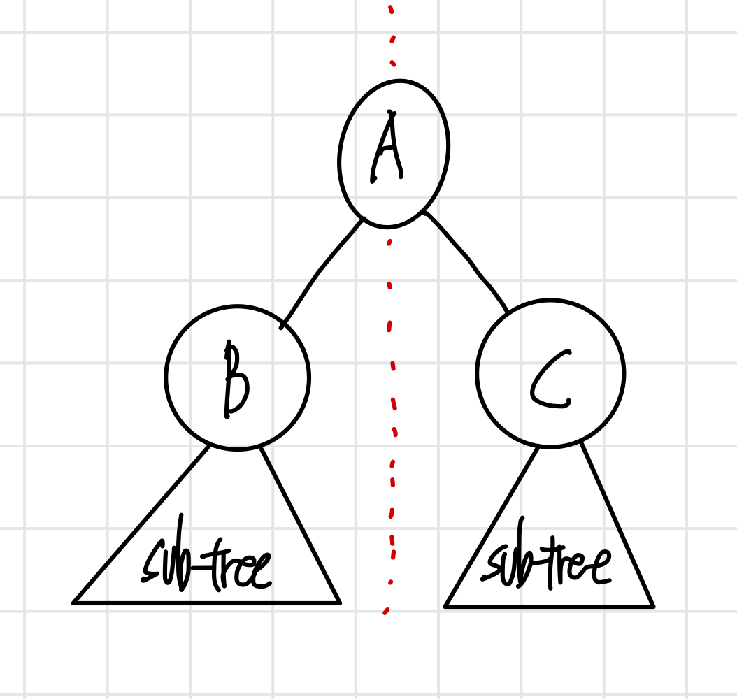 A 노드를 기준으로, C를 포함하는 서브트리는 A보다 큼 (오른쪽 서브트리)
