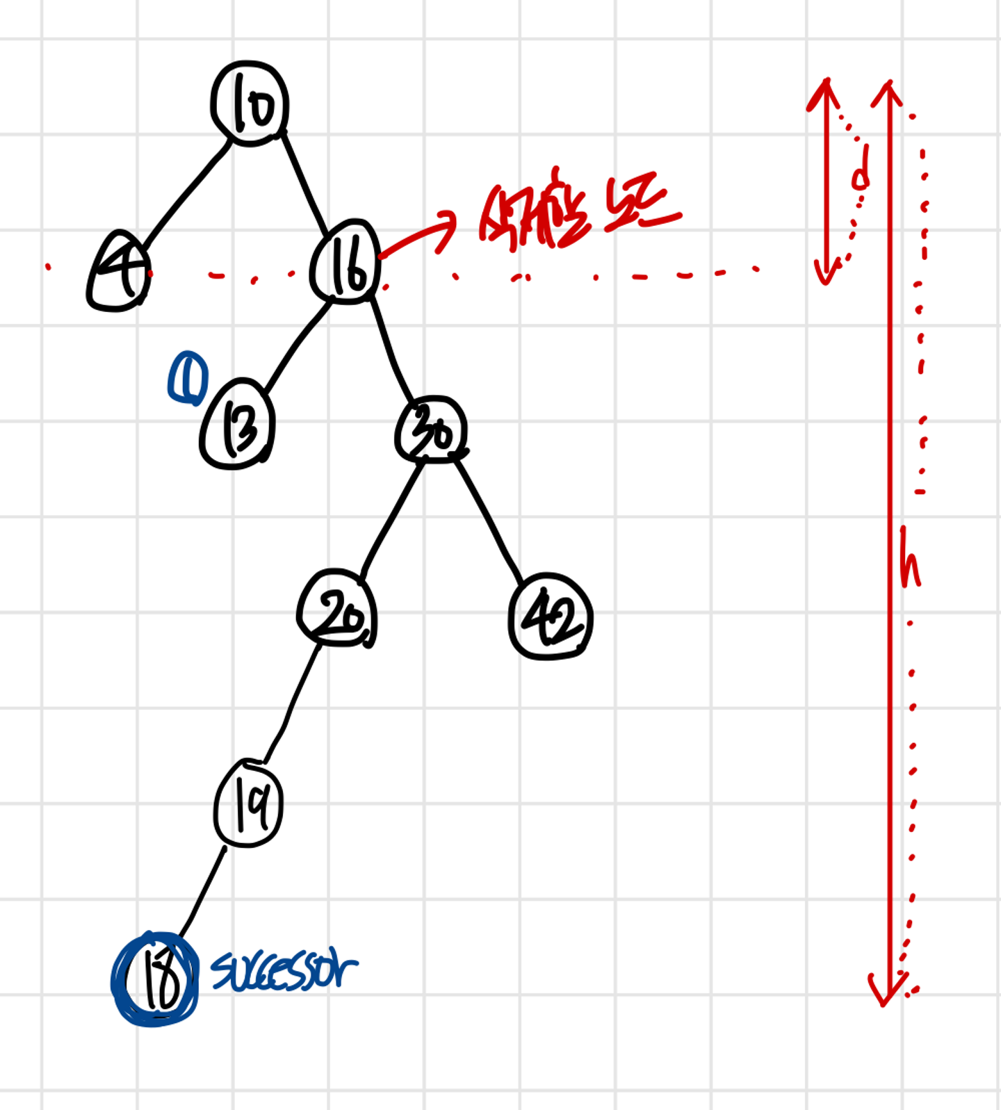 삭제할 노드에서부터 시작하여, successor 를 찾아가는 것 또한 높이에 비례한다