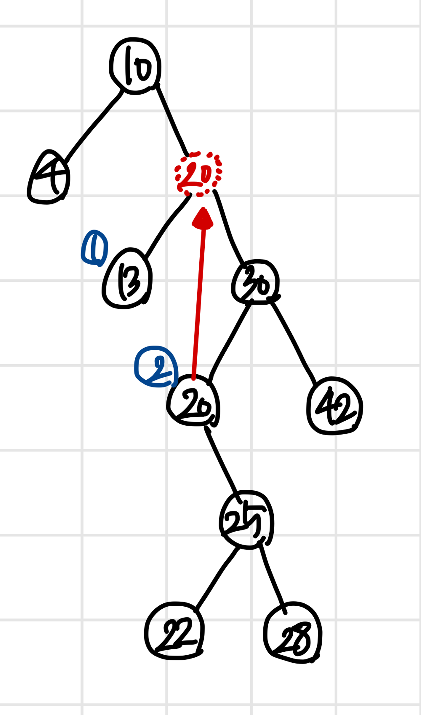 완성된 그래프는 다음과 같으며, BST 의 조건을 모두 만족한다