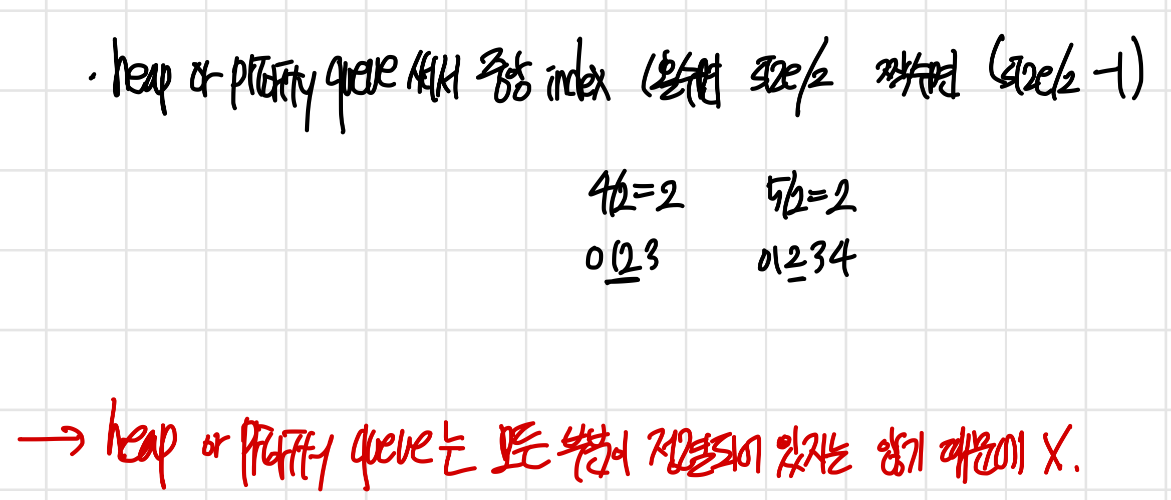 처음에는 이런 생각으로 정렬된 배열에서의 중앙 인덱스를 구해서 중앙값을 구하면 되겠다고 생각했지만, 생각해 보니 Heap은 내부가 정렬된 상태는 아니기 때문에 이렇게 풀이하지 못했다