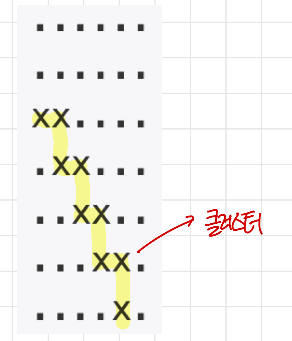 클러스터가 분리되었음을 알 수 있는 방법은 여러가지가 있을 수 있지만, 나는 위에서 설명했듯 클러스터가 분리되어 떨어질 때에는 다른 클러스터의 위에 떨어지거나, 바닥에 떨어져야 한다는 사실에 집중했다.