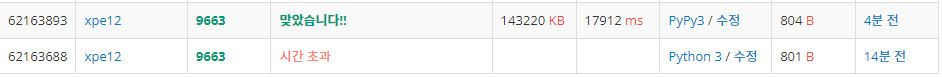 이건 언어적인 태생의 차이이고, 이를 보정해주지 않은 문제에 잘못이 있기 때문에 일반 파이썬에 비해 약 3배정도 빠른 PyPy3로의 제출을 다들 권했던것 같다